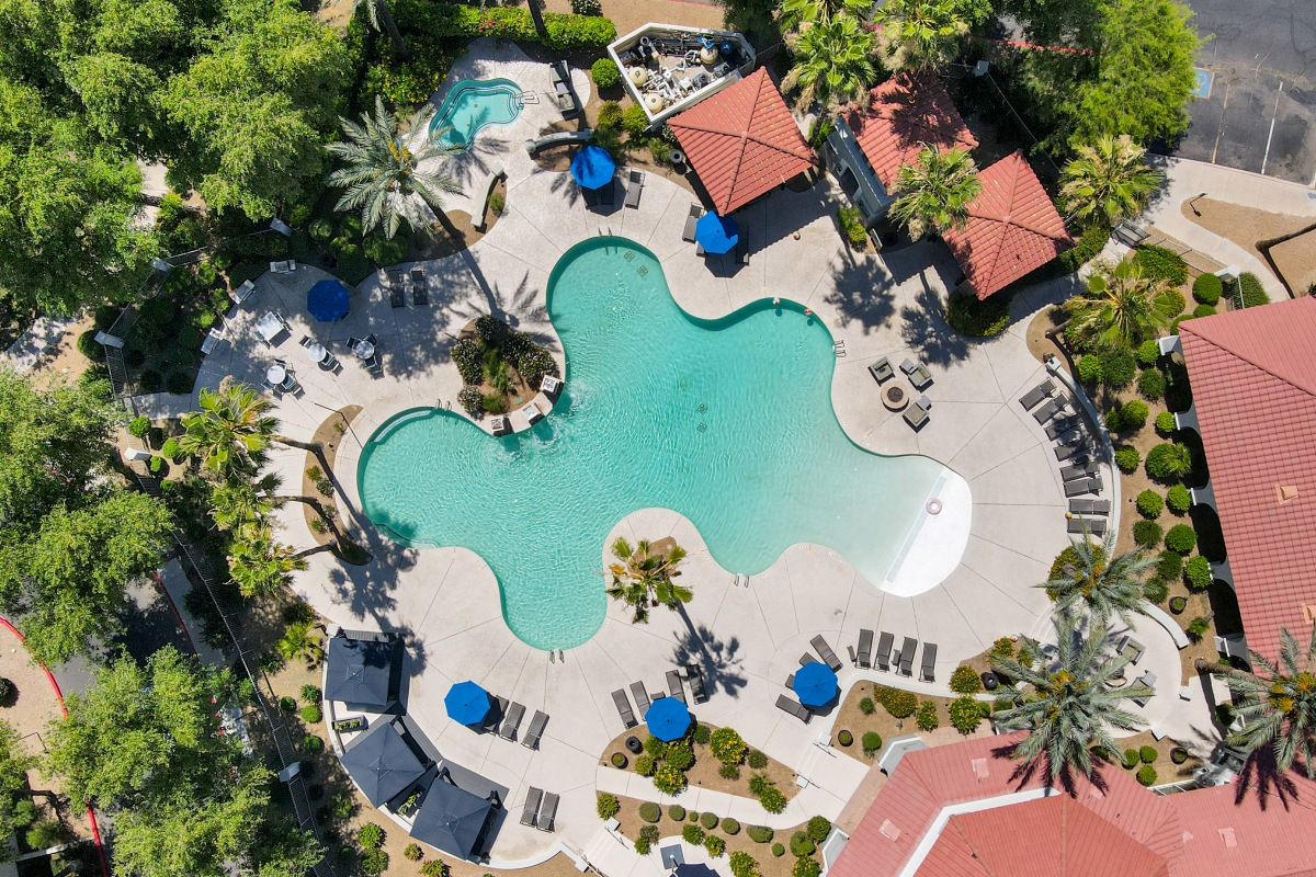 Lagoon-Style Pool With Waterfall and Oversized Spa