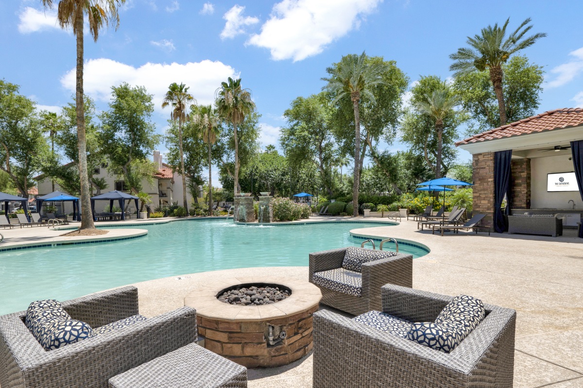 Outdoor Lounge Area With TVs, BBQs, and Built-In Coolers